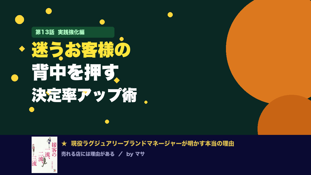 → 接客中に聞いた情報を後半で活かす。これがパーソナルな提案の核心。